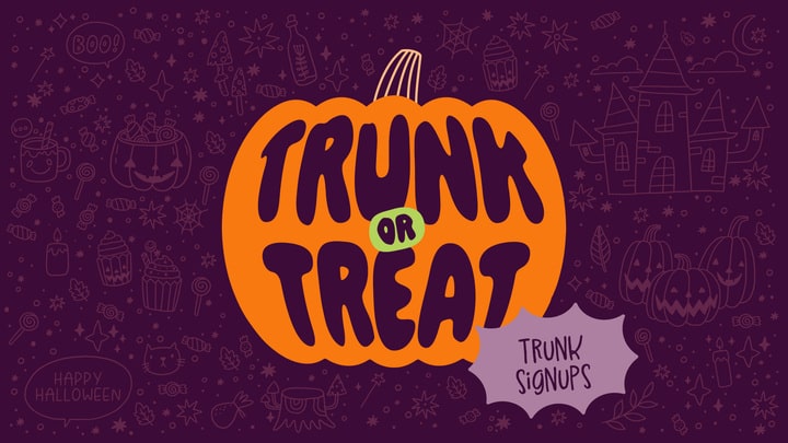 It's time for our biggest outreach event of the year, Trunk or Treat! Join us for free candy, games, fun fall food, bouncy houses, a petting zoo, and more. Admission is free. Bring your family, invite a friend or neighbor, and enjoy a fun day out on the lawn with all the fall festivities!Sign up…